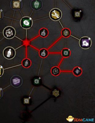技能到10级就会出现一个黑点吞你的技能,路线也是有套路的,最开始的话你点完几个他就会随机出现在技能栏外围,然后按照线路去吞你的技能,如果你把它堵住了或者他没有目标了就会重新在外围随机出现,如果这条线路上有8个可点的图标,假如他吃掉了最靠近中心的那个的话,整条8个技能会全部黑掉,毕竟你已经没线路点进去了,所以想花最少的钱多要好的消耗品你就得跟它玩智商