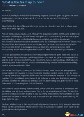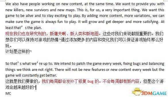 今日,《黎明杀机》开发商Behaviour Digital Inc.为我们带来了更新内容,如果你不会英文或者是没去关注,那么请看黎明杀机吧玩家“永远不说离开你”带来23日更新翻译。
