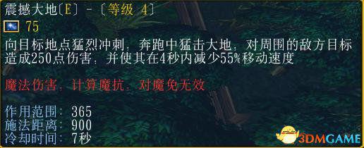一技能 E向前奔袭,对触经的敌方单位造成杀害和减速