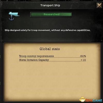 首先看这张图,初始的运输船的上限是10,代表同一时间只能有10个师进行登陆,这是对一个国家而言的。