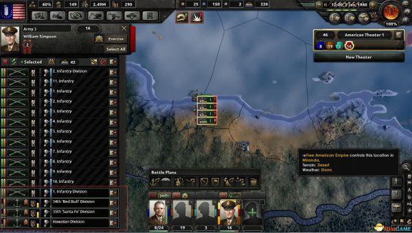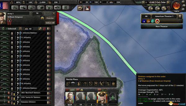 2.选中要登陆的部队,注意没必要单独编一个军,用shift键从本来的军中选需要的就行,这里只选了4个师。