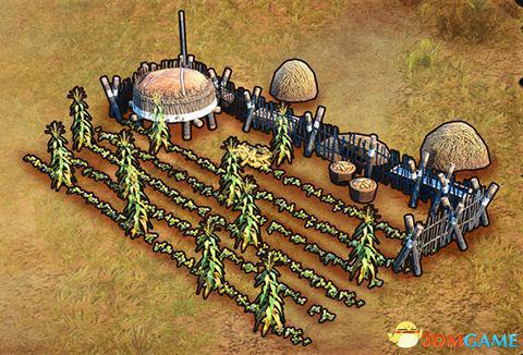 详解:在农田工作的采集者会提供稳定的食物产量给村落。建造农田需要很多木材,因此玩家通常会在附近快没猎物时,或想要让采集者待在较安全的地方时才会开始建造农田。刚开始从农田收集食物的速度很慢,但在研究几个改良技术后,农田会成为非常有效率的食物来源。每个农田都只能够容纳一定数量的采集者。