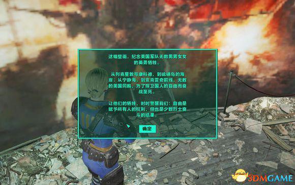 宁静海战役:宁静海是当初美国阿波罗11号在1969年登月的地点,文中原文提到“fought and died”说明美国曾在月球上进行了一场惨烈的战斗,而并非是单纯的太空卫星争夺战,是辐射系列的假想世界战争。原本在各个论坛里被玩家认为是辐射4新DLC的背景故事,但最后一批的DLC似乎否决了B社自己在自由博物馆写下的碑帖