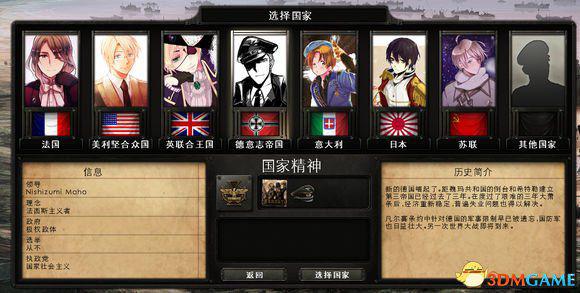 本mod主要是将原有的将领、国家元首替换成ACG相关的角色。目前只完成了主要国家的60%左右的替换工作。