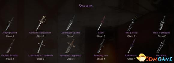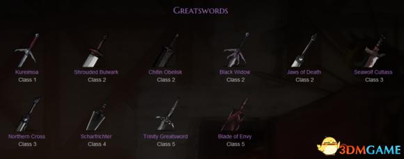 飞龙桥大剑和海狼弯大剑伤害差不多,中规中矩的大剑,善用重击可以敲死弱斩击的敌人;死亡之牙重击伤害倍率较高,也不错。总体来说二类剑没有明显缺陷。一类剑