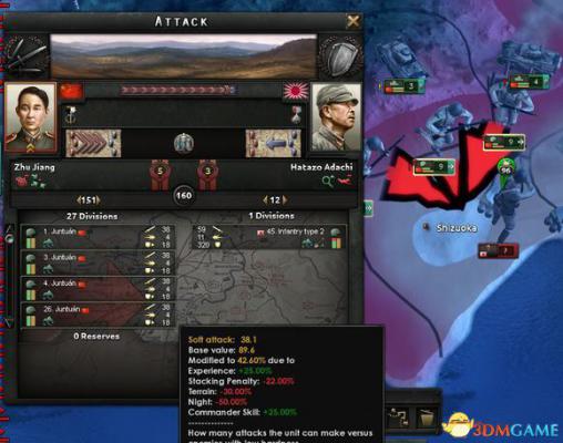 一个方向进攻,部队数大于8(不包括8)会受到叠加惩罚,每多一个方向进攻,+4容量。进入战场的部队每多一个,-2%攻击。防御也是,部队数超出8的部分,每个-2%攻击。
