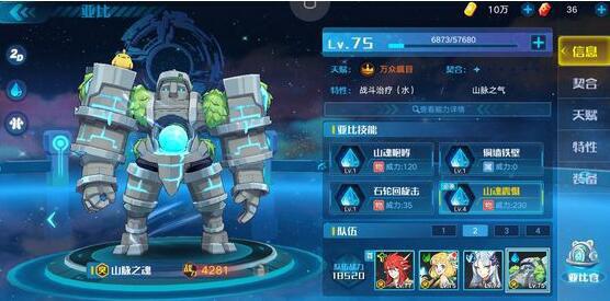 山脉特性:属性特性是放技能回血的那个 专属特性是免疫灼烧的,下面附图。