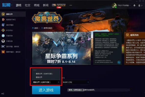 第三步:点击下方版本选项,可以看到有《魔兽世界》正式服及怀旧服,切换至怀旧服,点击下载(若不能下载,需先行在正式服中充值月卡即可)。