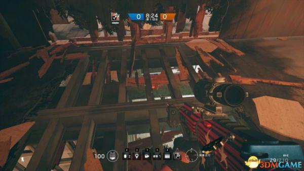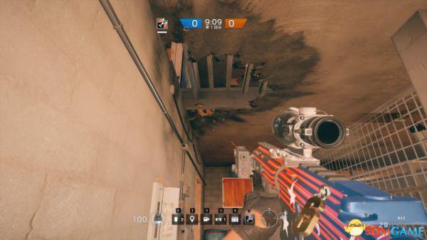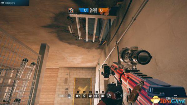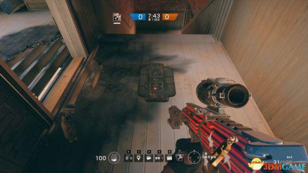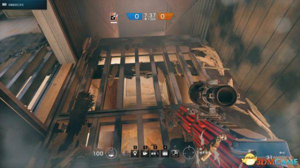 其实这一个点是用于防守方偷人的一个点,实际作用并不是太大,在这里防守方用喷子就可以喷开并看到下面楼梯上来的人以及窗户(记得小心边上窗户外的人,没有装甲板建议不要这么做)