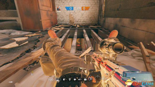 这里是二楼第二个贴片炸药的位置,炸开的地方同样用作与进攻方打厨房这个位置