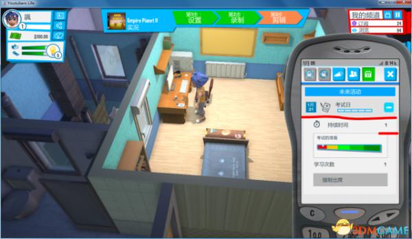 进入游戏以后,根据指导一步一步来,一开始只能够学习,没事就去学习,学满了之后可以不断的做你仅有的游戏视频,积攒人气。 另外如果性格里面选的是“超级明星”,那么前期升级会比较快,做出来的视频也会比较好。