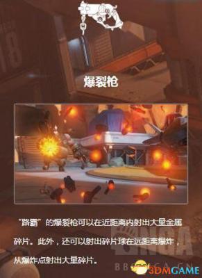 左键为散弹模式,射出的破片会横向扩散,只有近距离命中才能完全发挥出伤害,基本上不到300血无护甲护盾的敌人近距离吃一发全额伤害是直接秒杀的,不死就接一拳,揍脸上肯定死!中距离射击伤害尚可,对枪法要求较低。因为扩散效果,所以远距离左键射击作用十分有限,推荐使用右键的铁球模式,但是路霸的定位本身就不适合远距离精准点射,所以聊胜于无