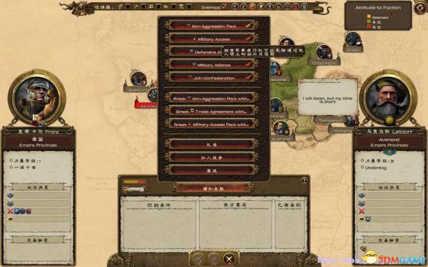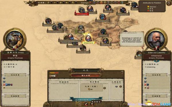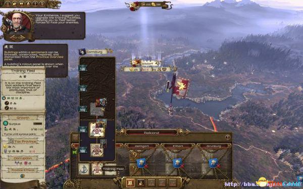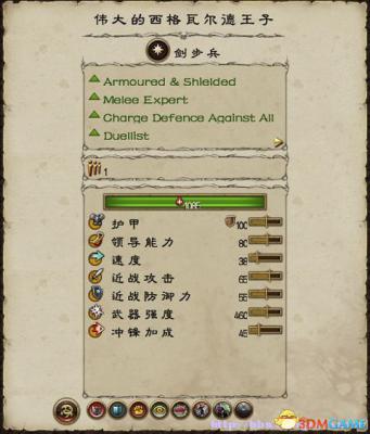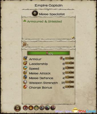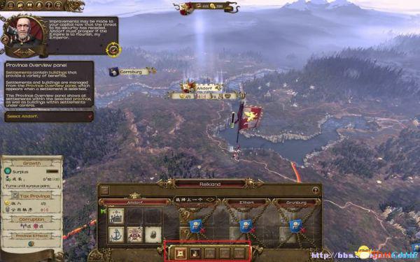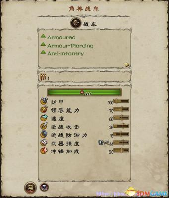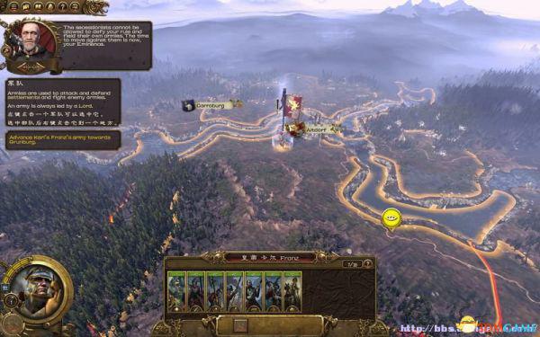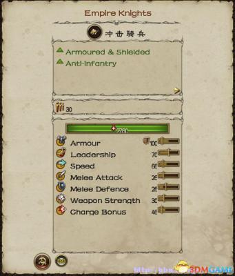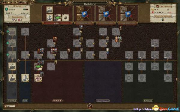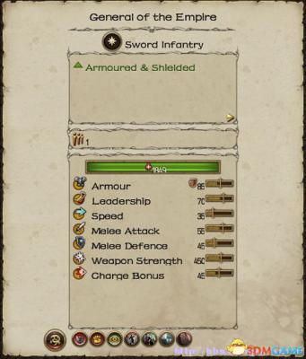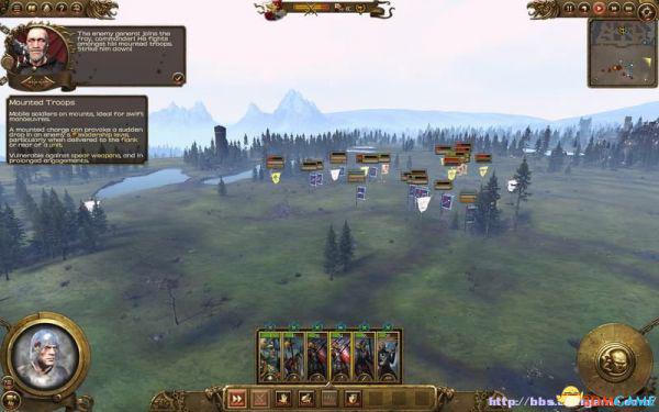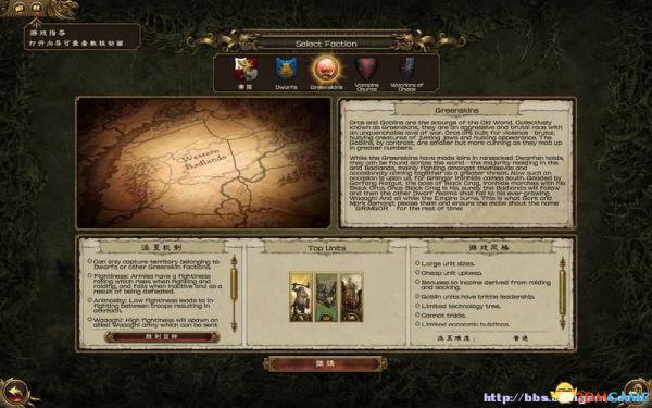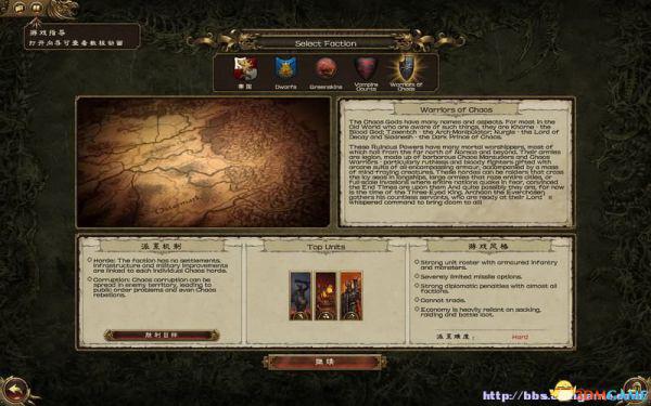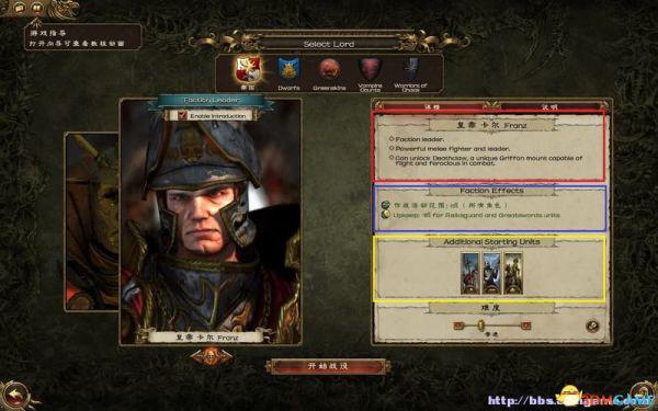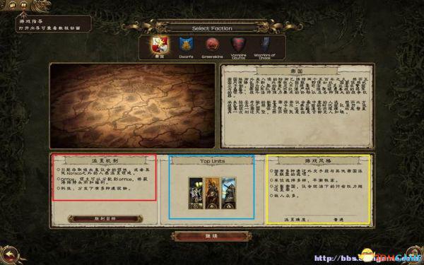 右下角黄框内的风格说明了帝国的玩法特点,战役难度一般,依靠平衡的兵种以及外交进行战役,算是适合上手的中规中矩派系。