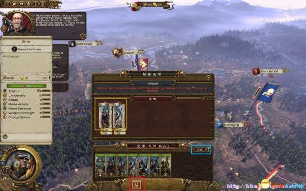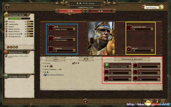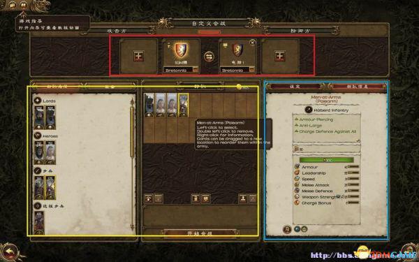 此外,不同领主开始战役时的起始兵种也不同(黄框)。