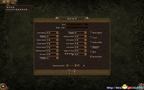 抗锯齿,纹理贴图、水面细节、草地细节、地形细节、建筑细节、单位大小、模型质量。