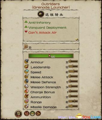 对付敌人的远程、骑射部队以及慢速重甲步兵很有效。