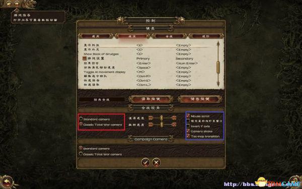 红框内上下两项切换标准镜头或是全战游戏的经典镜头模式。