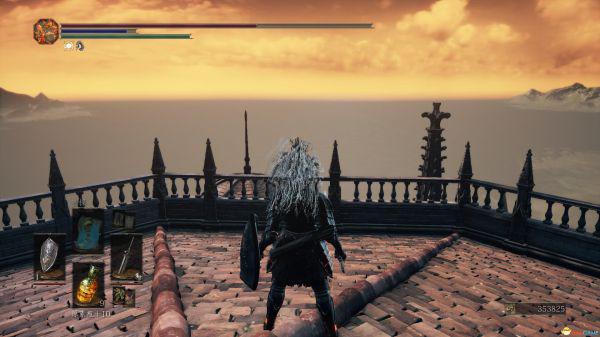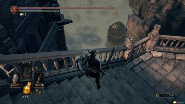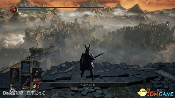 火祭场最高处,也就是拿深渊防火女灵魂的地方看到的。一侧就是王城。