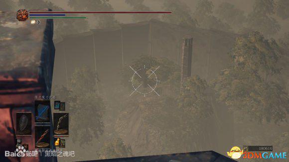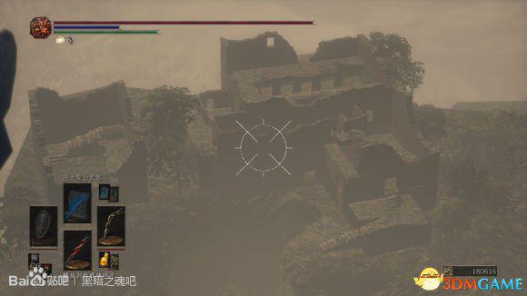 如图,当我们来到“高举小环旗”的这里,我们几乎是正对不死聚落和大树那里。而幽邃教堂在我们右侧,根据我之前说的面对南方,右侧就是西。而且,看起来似乎幽邃教堂距离我们比不死聚落还更近一点。