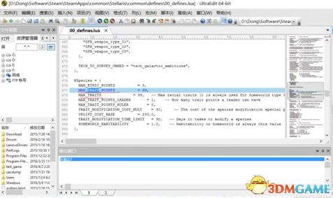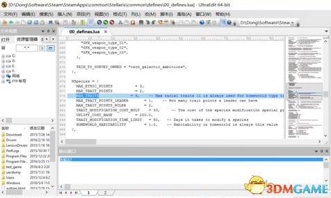 首先依旧是老套路,游戏根目录Stellariscommondefines下打开00_defines.lua文件搜索trait