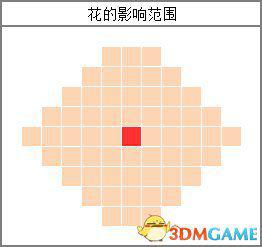 这样范围内的任何一处有花的话,这个蜂箱就能够产生相应的蜂蜜,由此 ,可以得出花的影响范围: