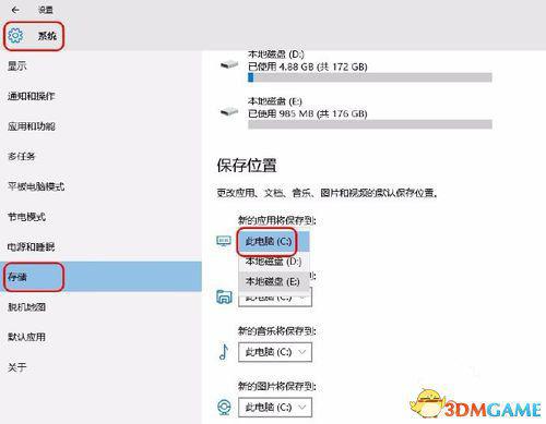 由于这款游戏要在windows的应用商店购买,所以我们需要手动更改在商店购买的游戏默认的安装位置,在设置面板的存储选项中进行相应的改动就可以了。