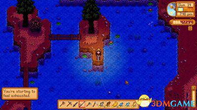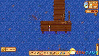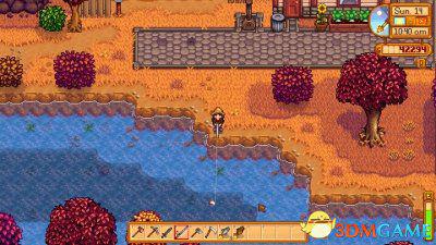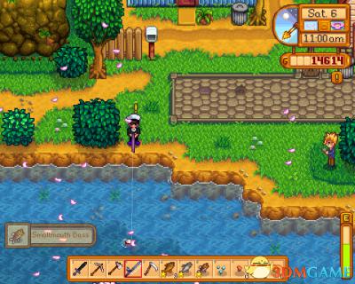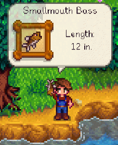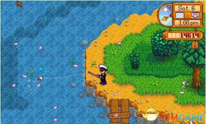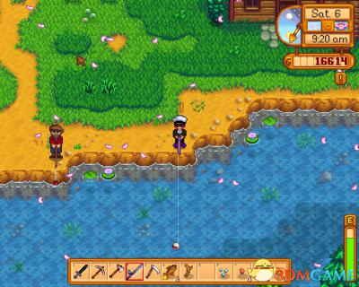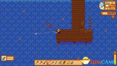钓鱼——使用钓鱼竿来钓鱼。你能在海洋,湖泊或者小河,以及一些特别的地方钓到鱼,无论是白天或者晚上,不过有些鱼只出现在下雨天.钓来的鱼用于烹饪和社区中心献祭的一些垂钓包。每种鱼你所钓的最大尺寸都会被记录在收集菜单。