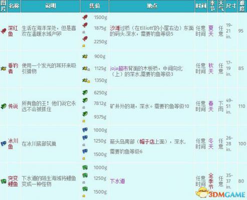 星露谷物语 钓鱼攻略 全钓鱼点位置及鱼类数据大全
