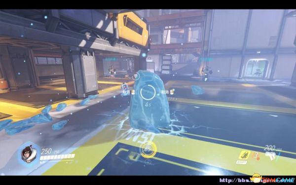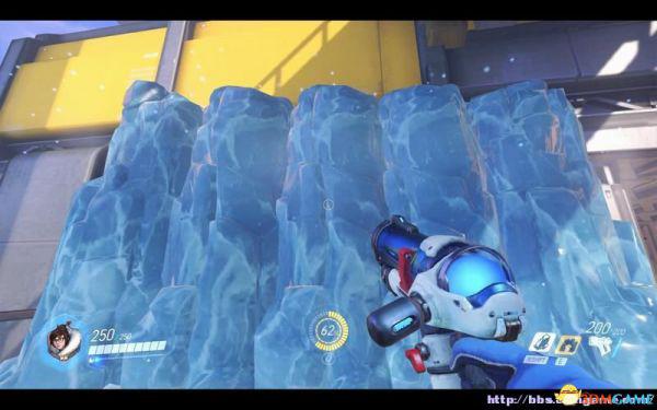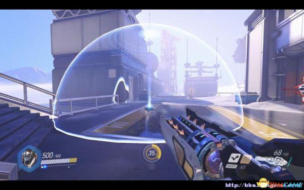 莱茵哈特可以让队友躲在力场后,屏蔽伤害。
