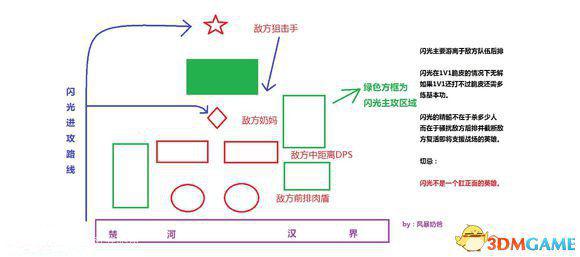 闪光核心打法即是绕后,切脆皮,干掉任何我方队友正面干不掉的英雄。