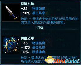 投掷匕首一般都是开局出了以后不用管的,等到最后再升级成为黄金之弓。