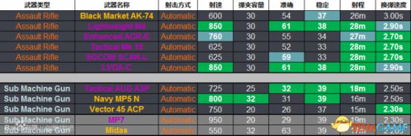 《全境封锁》游戏中玩家们可以参考武器的各项属性数值进行选择想要使用的武器,下面为大家带来《全境封锁》部分武器属性数值。