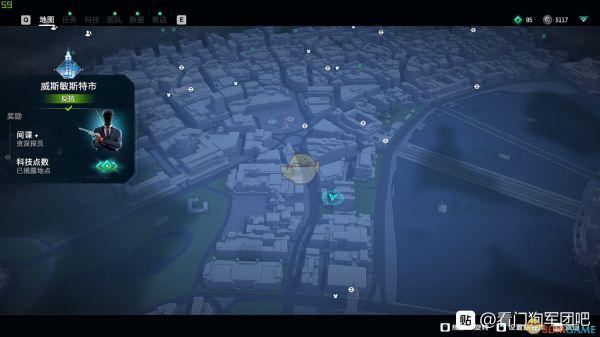 《看门狗:军团》中间谍的刷新位置是比较多的,首先SIRS总部的附近是有非常多的间谍,多逛几圈就能找到,其次威斯敏斯特市的一个巷子里是固定刷新点,位置如下图。