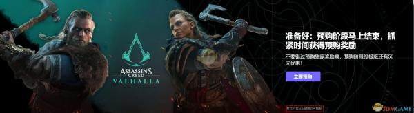《刺客信条:英灵殿》预购时间截止日期是2020年11月10日早上7点,由于未注明时区,所以想预购的玩家最好需要早早购买此游戏,可以额外获得额外预购特典——「狂战士之道」。