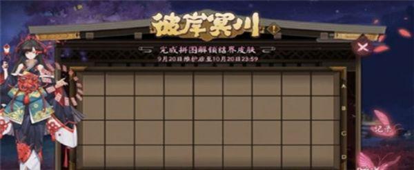 活动期间内,集齐所有拼图碎片,便可兑换本次活动的最终奖励,结界皮肤「彼岸冥川」。