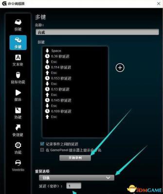 然后鼠标双击G系按键图标,在多键设置里如下图设置,重复选项一定要选成切换,视角越短越好,直接1就行。