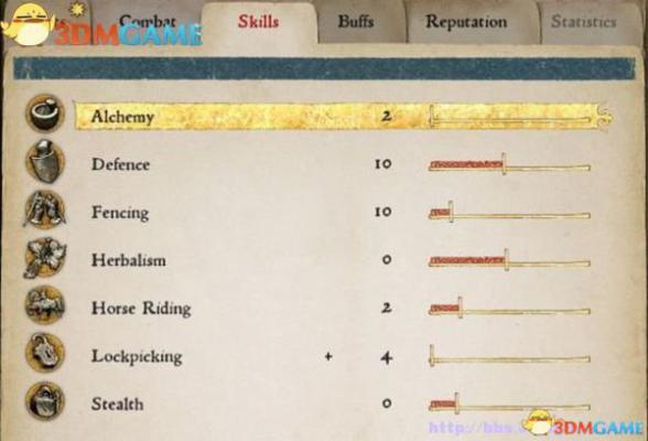 剑术(Fencing):剑术能使你精通于剑的运用,让你的格挡和攻击速度更快。