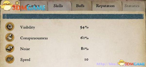 噪音(Noise):它决定着你移动时发出的响动,噪音程度取决于你穿着的衣服和装备的武器。