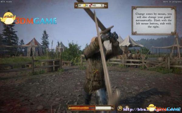第三节学习格挡,长按Q键保持防御姿势,然后划动鼠标来改变格挡的方向。