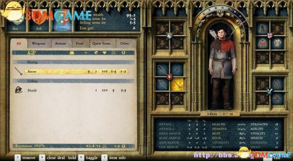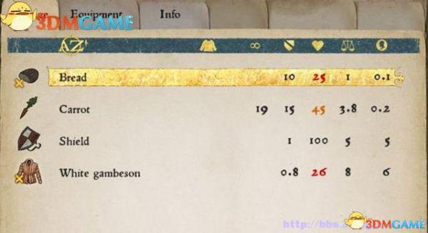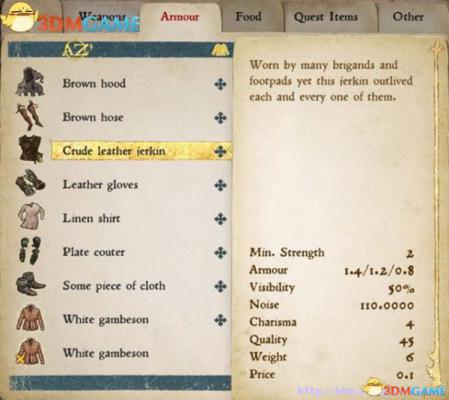 可以装备的物品都有使用条件、护甲值、攻击力、噪音、魅力、品质、重量、价格等属性数值。