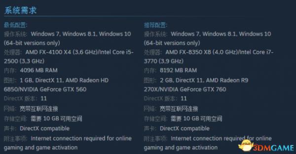 图形: 2 GB, DirectX 11, AMD Radeon R9 270X/NVIDIA GeForce GTX 760