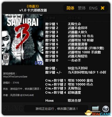 侍道3 PC版无限生命武器不损坏等十六项属性修改器