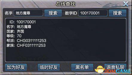 在这个界面你还可以加查找的玩家为好友,临时好友或黑名单。