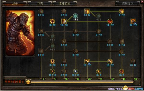 加点:战士老兵阶段放心攻击,把横扫加到10左右撕裂前期1点为了群攻,战吼破胆各一点,剩下优先军事素养、百战,战争号令1点开后面的小队加攻速后期点富余可以点满加防。精英期间把久经沙场和奥怒点上去,前期一两点就行。夜刃部分前期点出气爆和面纱,后面保证战士专精攻防差不多再结合自己装备的情况下,点出护甲和无敌刀锋。