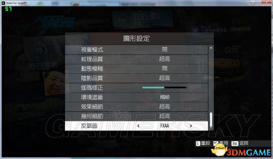 极品飞车19 抗锯齿设置 菜单按键及视角解析