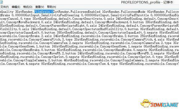 在我的文档-Need For Speed-settings中有个PROFILEOPTIONS_profile文件,用记事本把它打开,找到图中字段(可以ctrl+F),把选中部分里的1改成0(如图所示),就可以关掉画面噪点效果!感觉画面稍稍清晰了一点,而且感觉帧率稳定了一点!