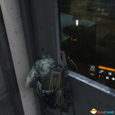 在大门左侧调整一下位置,你会发现 Ctrl进入掩体的提示。