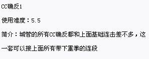 简单讲,打康指的是在对手出拳出到一半时打中他。成功的打康,不仅能够造成更高的伤害,还会让对手的硬直时间变长。《街霸5》深化了“打康”这个系统,加入Crush Counter(下文简称CC)的游戏机制。CC比普通的打康造成的伤害更大,硬直时间也更长。但是只有部分拳脚能够打出CC(一般是重拳及重脚)。和街霸前作不同的是,街霸5使用升龙拳等无敌技之后被攻击也会形成打康,本部分主要讲的就是如何用CC确反