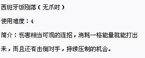 使用难度在1至5的,比较适合新手,难度更高的招式获得的回报和使用难度不成正比。所以没有熟练掌握之前可以不去考虑。