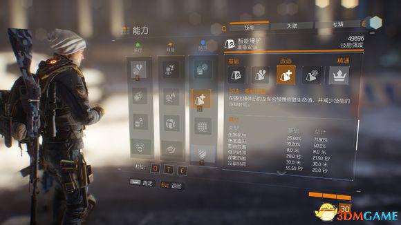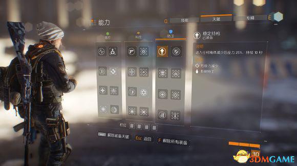 下面就是技能和天赋部分了,因为我打挑战只带 扫描,和智能掩体,我认为这2个技能对堆有的 提升最大,能让输出最大化,加血的支持平台(免疫平台,子弹平台)完全交给队友了。